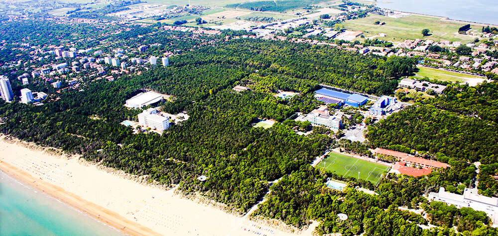 Wir garantieren Ihnen eine Unterkunft in einem einzigartigen Hotel in Lignano Sabbiadoro, das auch als Erholungs- und Sportanlage dient, dank der sich der gesamte Sportkomplex an einem Ort befindet! Es liegt in einem 60 Hektar großen Pinienwald, nur wenige Schritte von der Sportanlage und dem privaten Sandstrand des Hotels mit Liegestühlen und Sonnenschirmen entfernt.