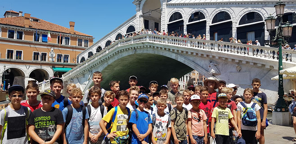 Zuerst fahren wir gemeinsam mit dem Bus zum Hafen, wo wir ein Schiff besteigen, das uns direkt in die Stadt bringt. So können wir das auftauchende Venedig vom Meer aus betrachten, was besonders für Kinder und Jugendliche immer ein großes Erlebnis ist. Nach der Ankunft gehen wir zu Fuß zum Hauptplatz, dem Markusplatz, wo wir die prächtige gotische Markusbasilika bewundern können. Anschließend besuchen wir die nächsten Sehenswürdigkeiten, für die diese italienische Stadt weltweit bekannt ist: die Brücken! Wir spazieren zur geschlossenen, barocken Seufzerbrücke und dann zur ältesten, majestätischen Rialtobrücke, die auch als Brücke der Liebenden bekannt ist.